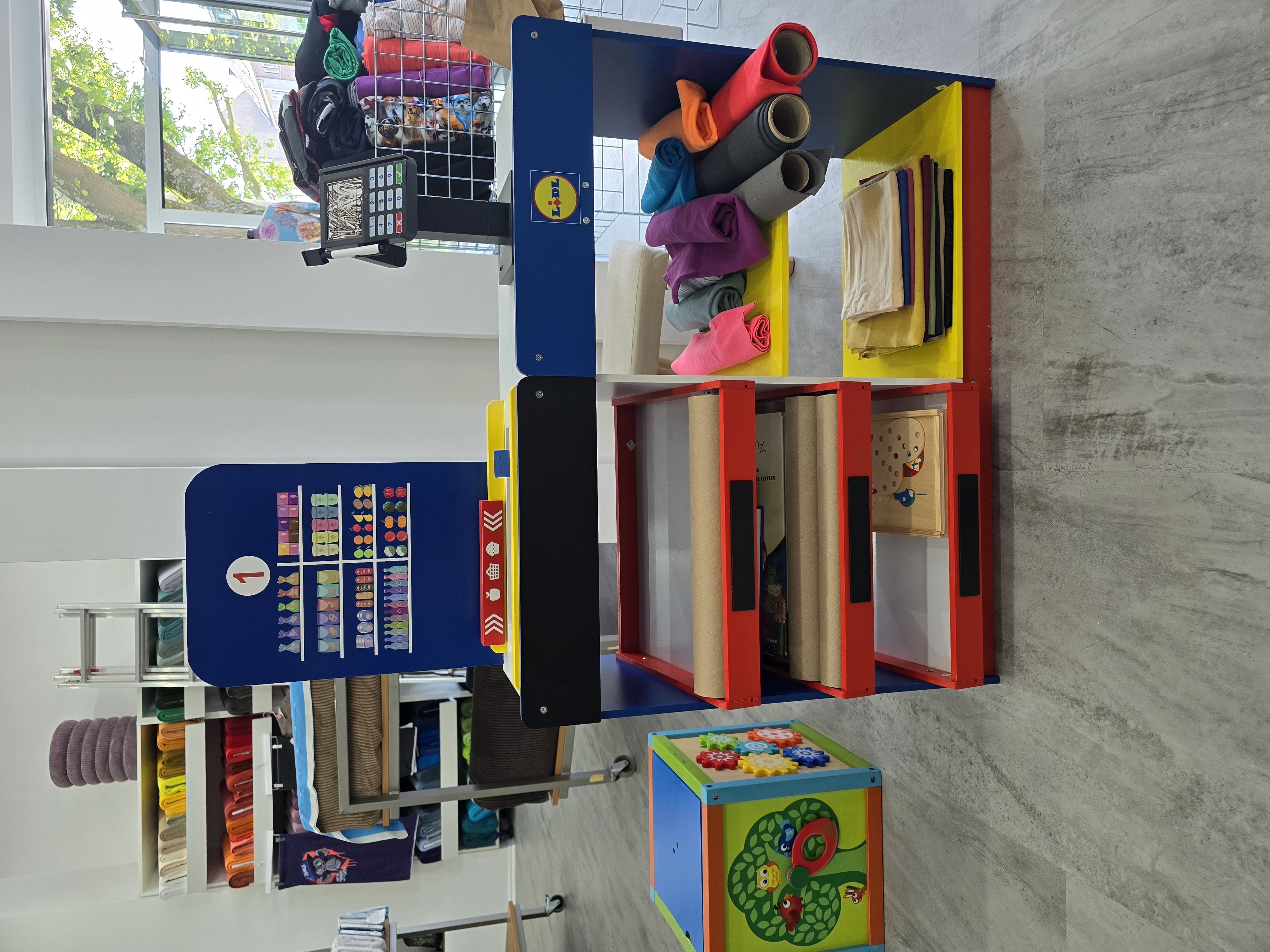 Wir haben für die kleinen Besucher einen eigenen Kaufladen mit Kassenband und Ec-Terminal aufgebaut.