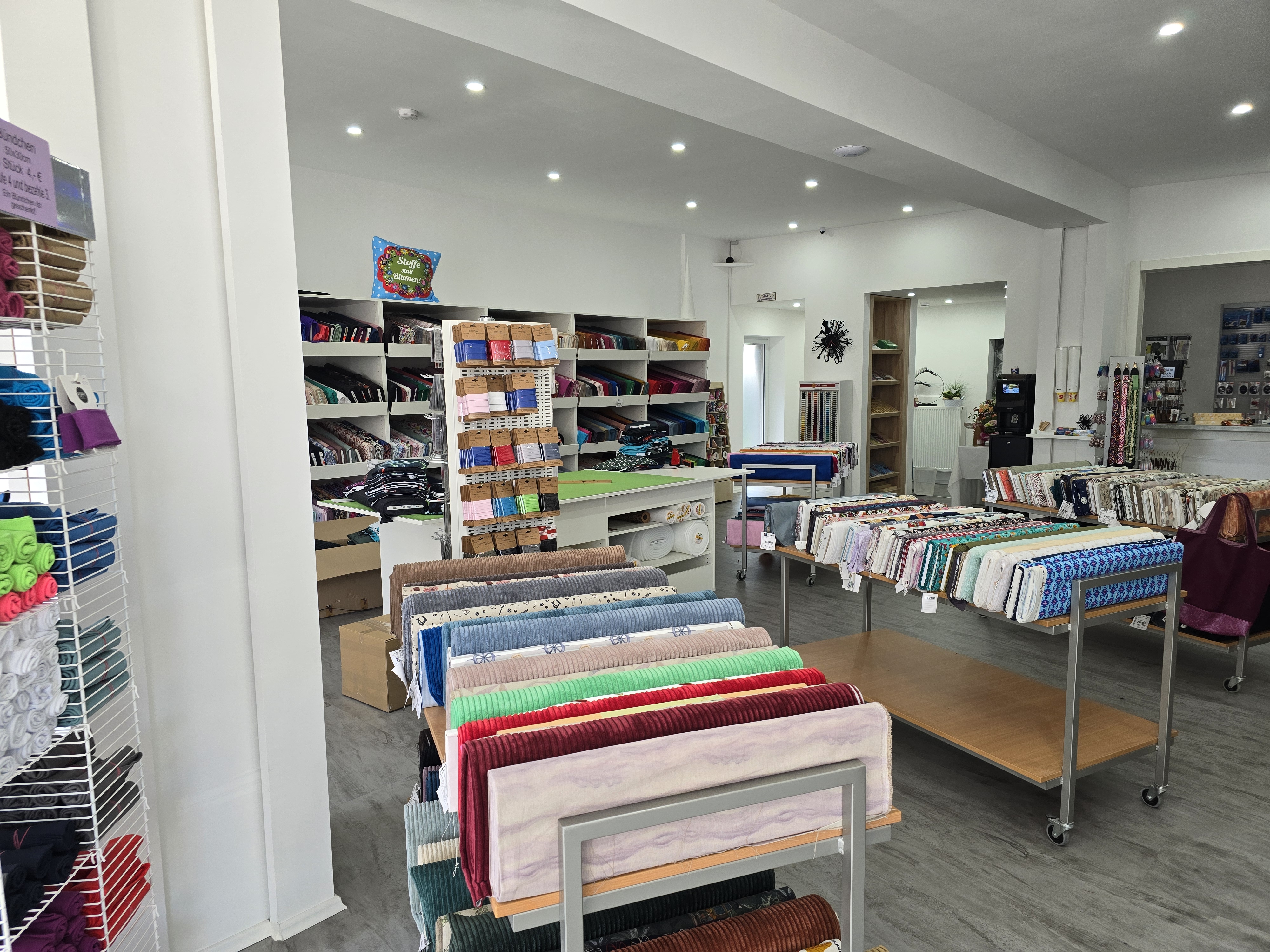Unser Kursraum für Nähbegeisterte und die es einmal werden möchten. Hier finden wöchentlich Kurse über 3 Stunden und Workshops über 6 Stunden statt.