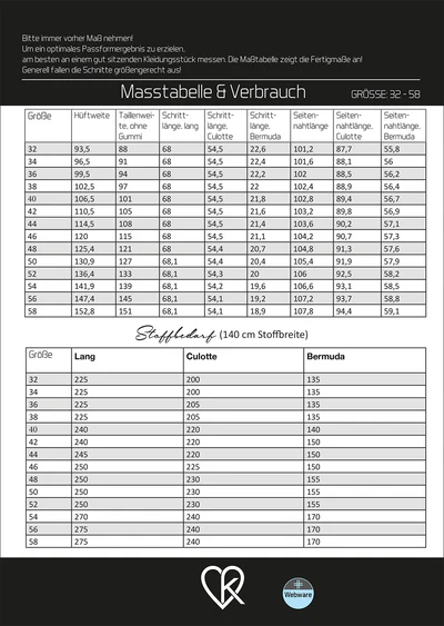 Das lässig weite Bein, die zwei Schritttiefen, der breite Gummibund sowie die drei Beinlängen machen ein echtes Multitalent aus diesem Schnittmuster. Dazu kommen die praktischen seitlichen Eingrifftaschen und die hübschen Falten auf der Vorderseite. Birga ist ziemlich schnell genäht und dank der Bundlösung mit Gummizug passt sie sich optimal jeder Figur an.