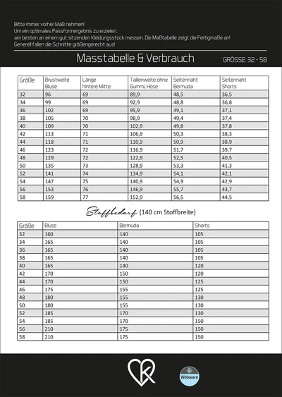 Leevke ist geeignet für sommerliche Stoffe- Musselin, leichter Frottee, Viskose oder Leinenstoff sind eine perfekte Wahl für das zeitlose Schnittmuster mit hohem Trend- und Wohlfühlfaktor.