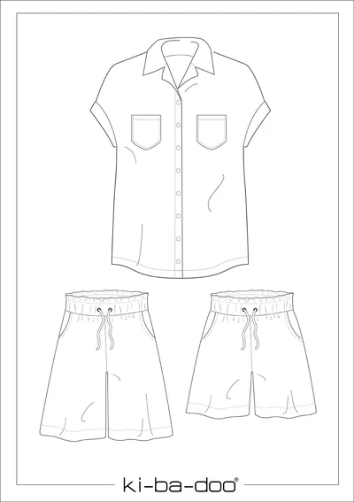 Die Bluse hat einen Reverskragen und kann optional mit Brusttaschen genäht werden. Shorts und Bluse aus dem gleichen Stoff genäht, ergeben einen coolen Onesie-Look.