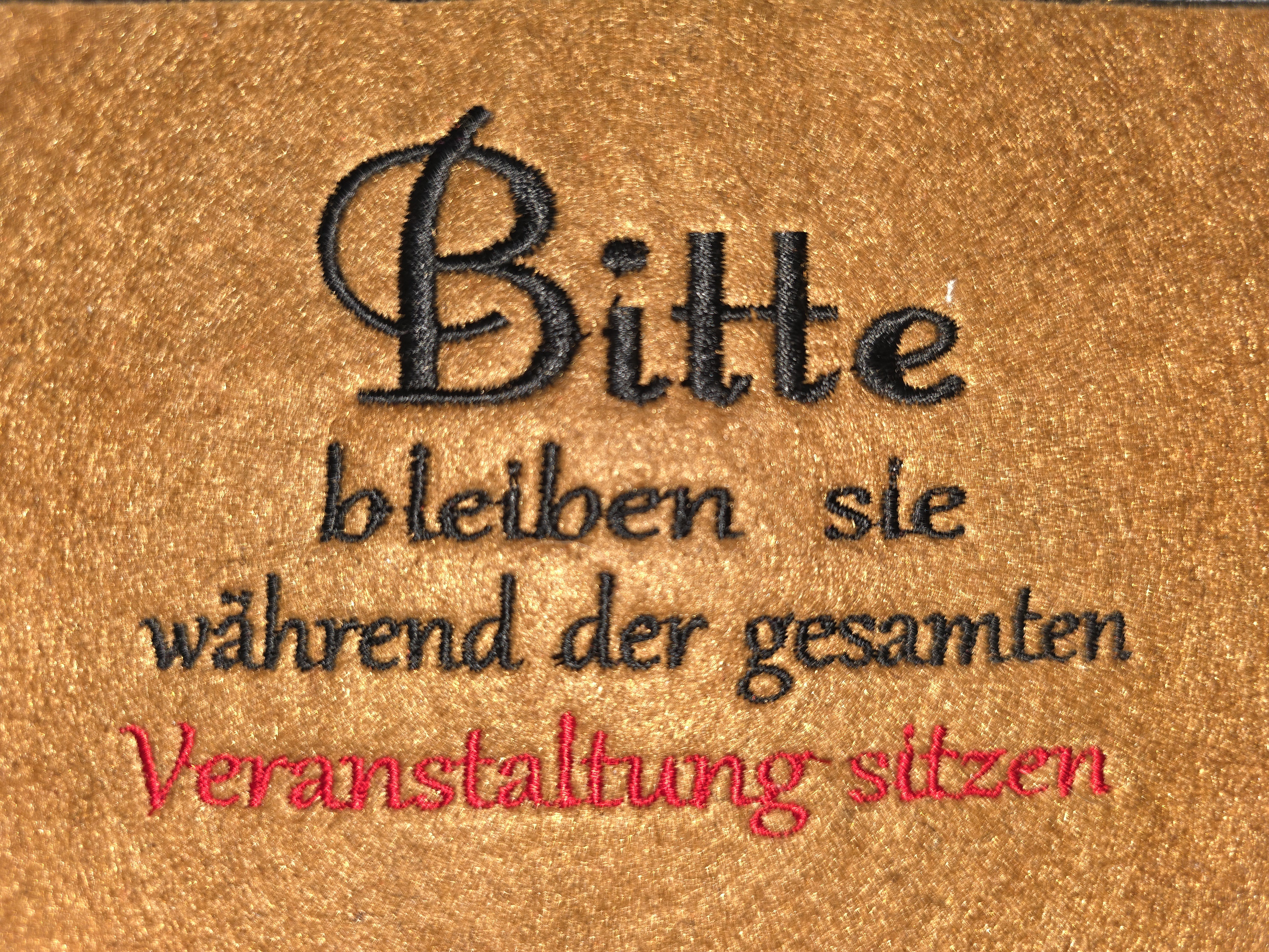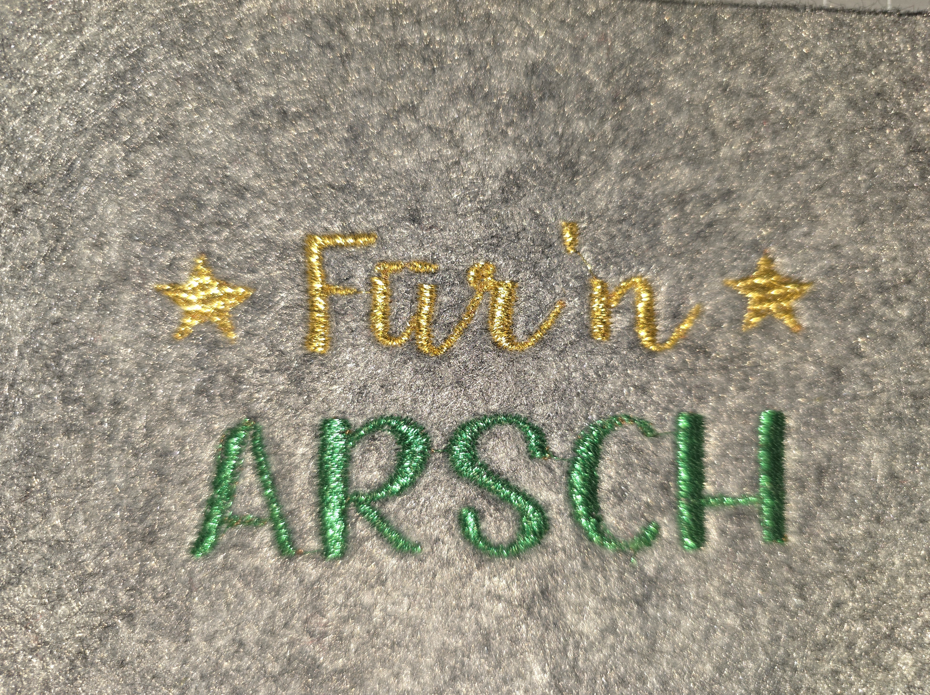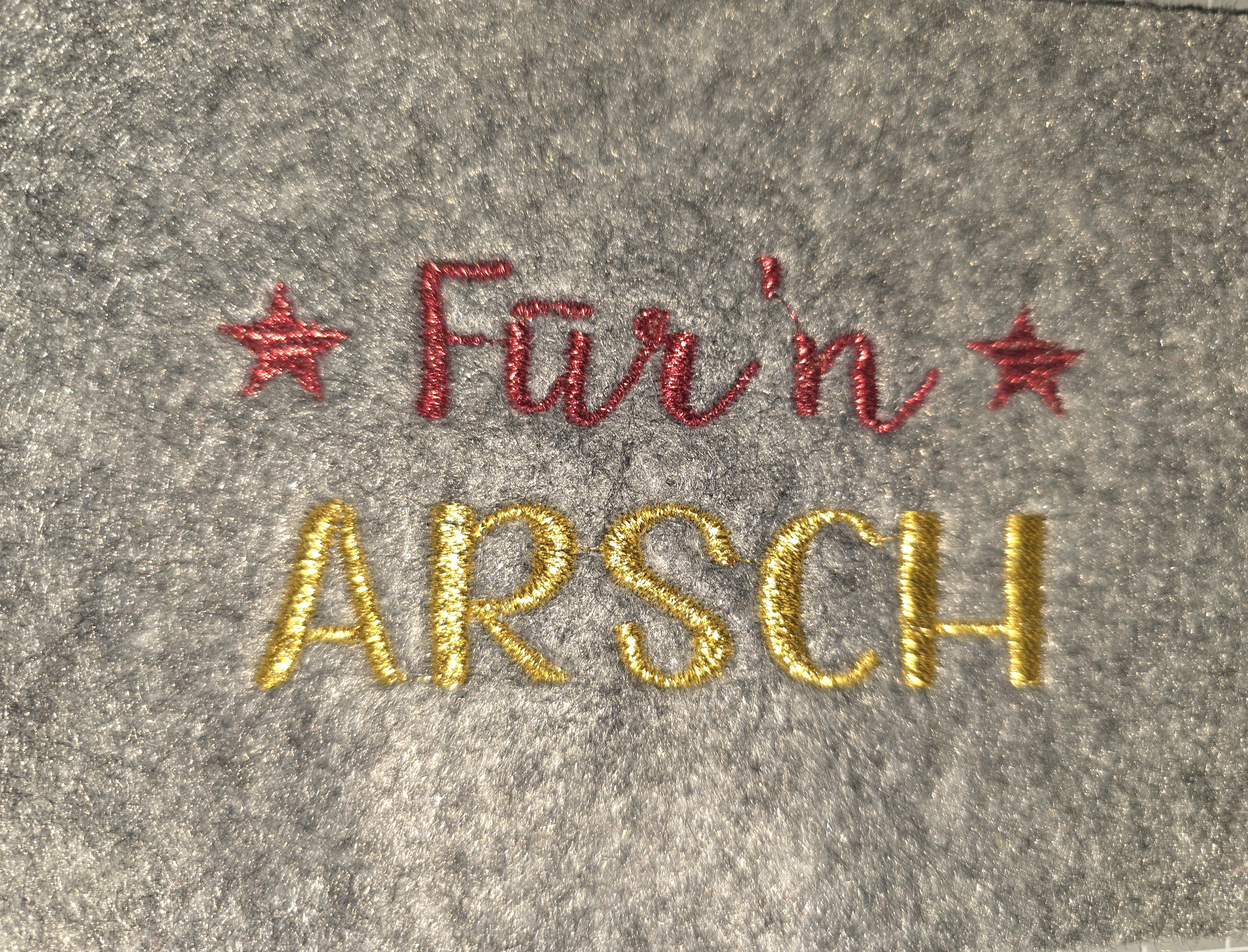 Hergestellt aus Filz (100 % Polyester) und bestickt mit Garn aus 100 % Polyester – wähle zwischen den Designs von „Rock-Queen“ oder wähle einen eigenen Entwurf.