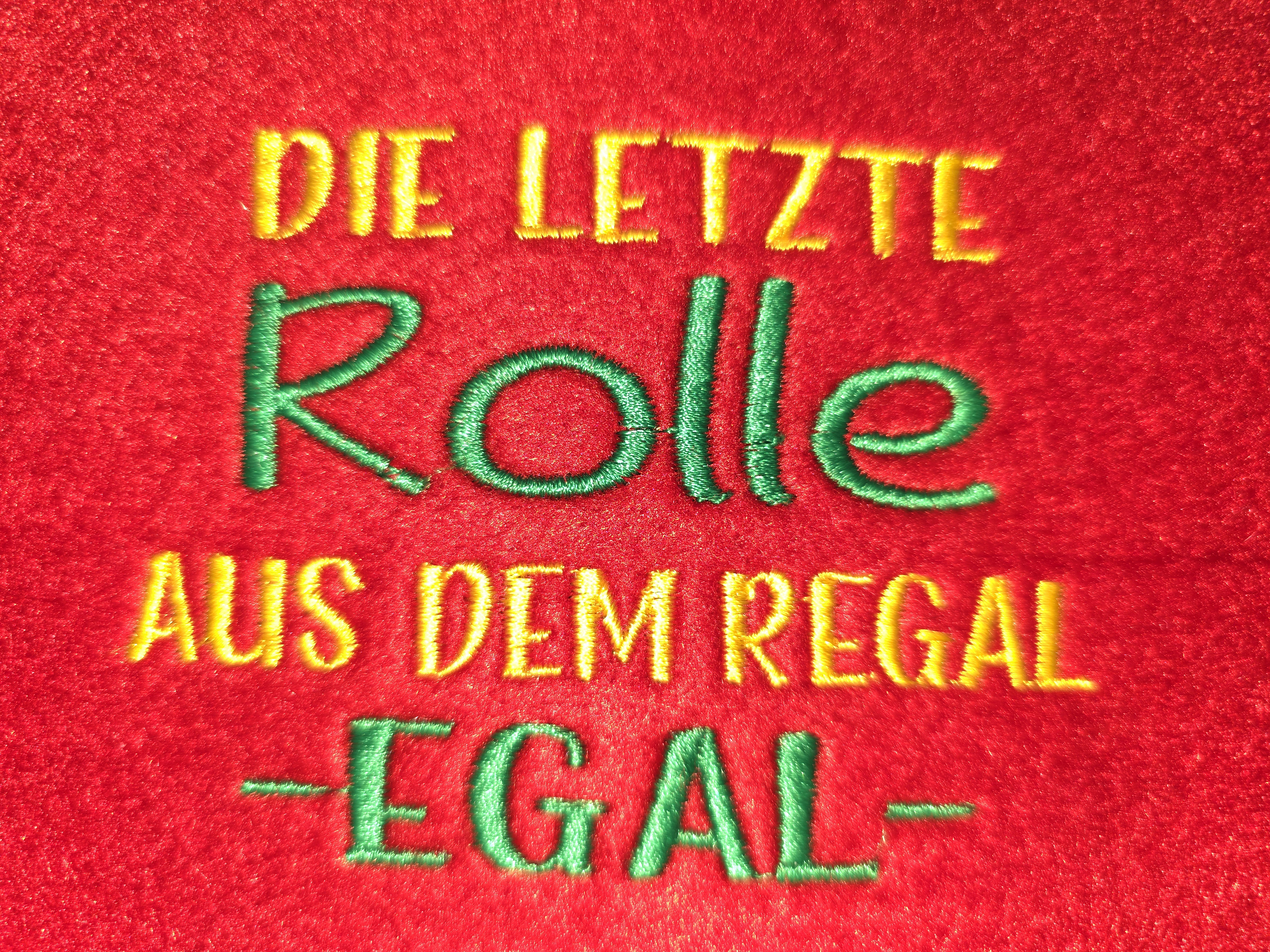 lustige Stickerei in einer Vielzahl von Filzfarben, ein echter Blickfang im Badezimmer oder auf der Toilette. Ideal zum Verschenken oder um dein eigenes Wc Zuhause zu verschönern. Die Größe beträgt etwa 40 x 10 cm und wird auf der Rückseite mit einem praktischen Klettverschluss geschlossen.